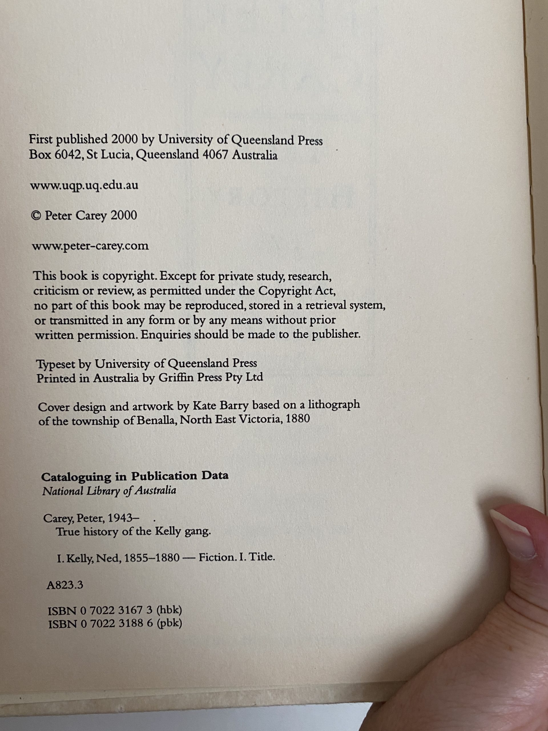 This hardcover edition is from the first Australian print run published 14th October 2000.