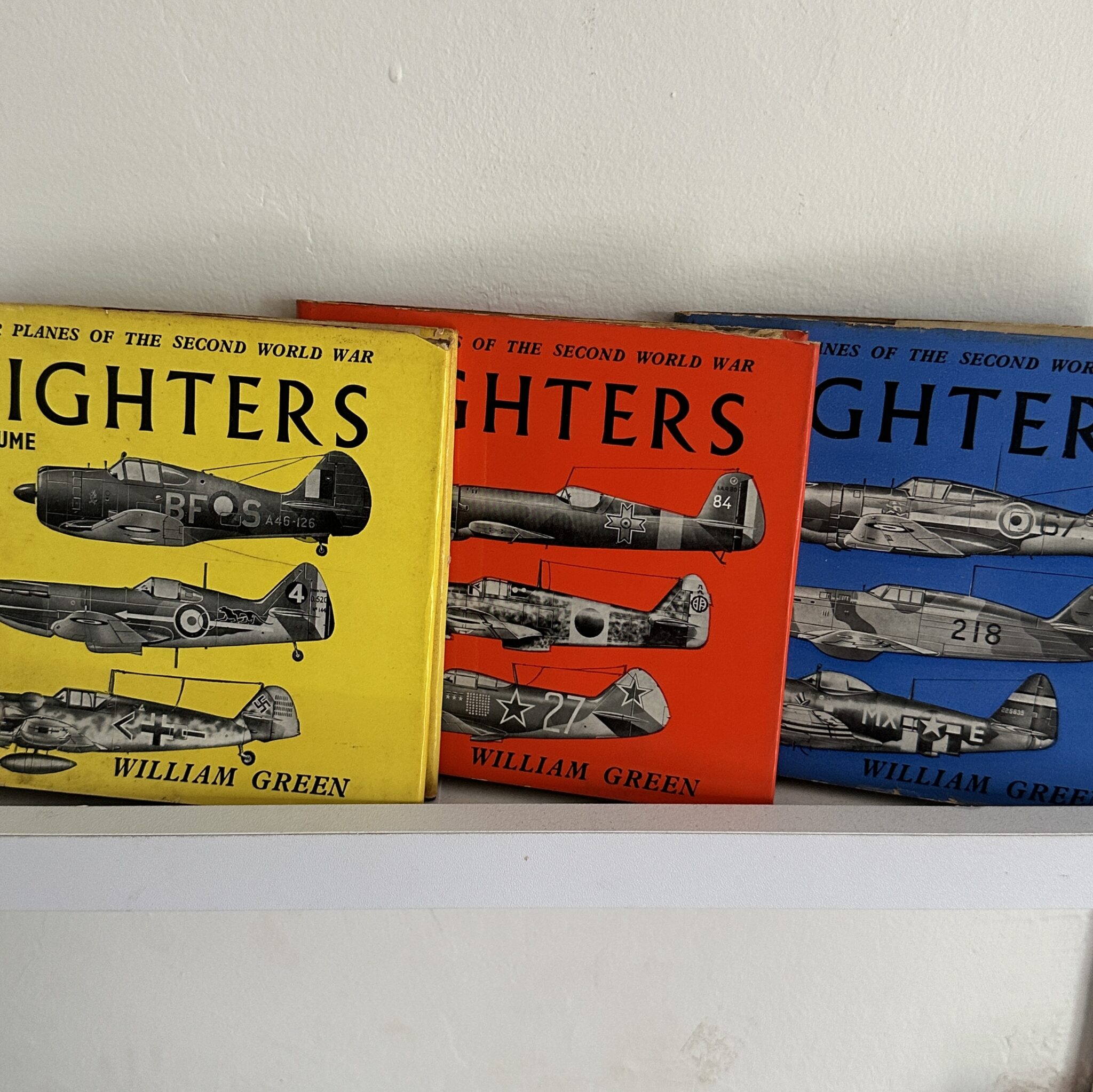 Volume One: War Planes of the Second World War, Fighters. A hard cover edition with black boards, silver lettering and clipped, illustrated dust cover. There is a previous sellers paper label on the inside front cover. There is foxing and toning throughout but the text and black and white illustrations are clear and legible. There is some rubbing, wear and tearing to the edges of the dust jacket. Publisher: Mcdonald & Co., London. Publication Date: Fourth impression, November 1963.