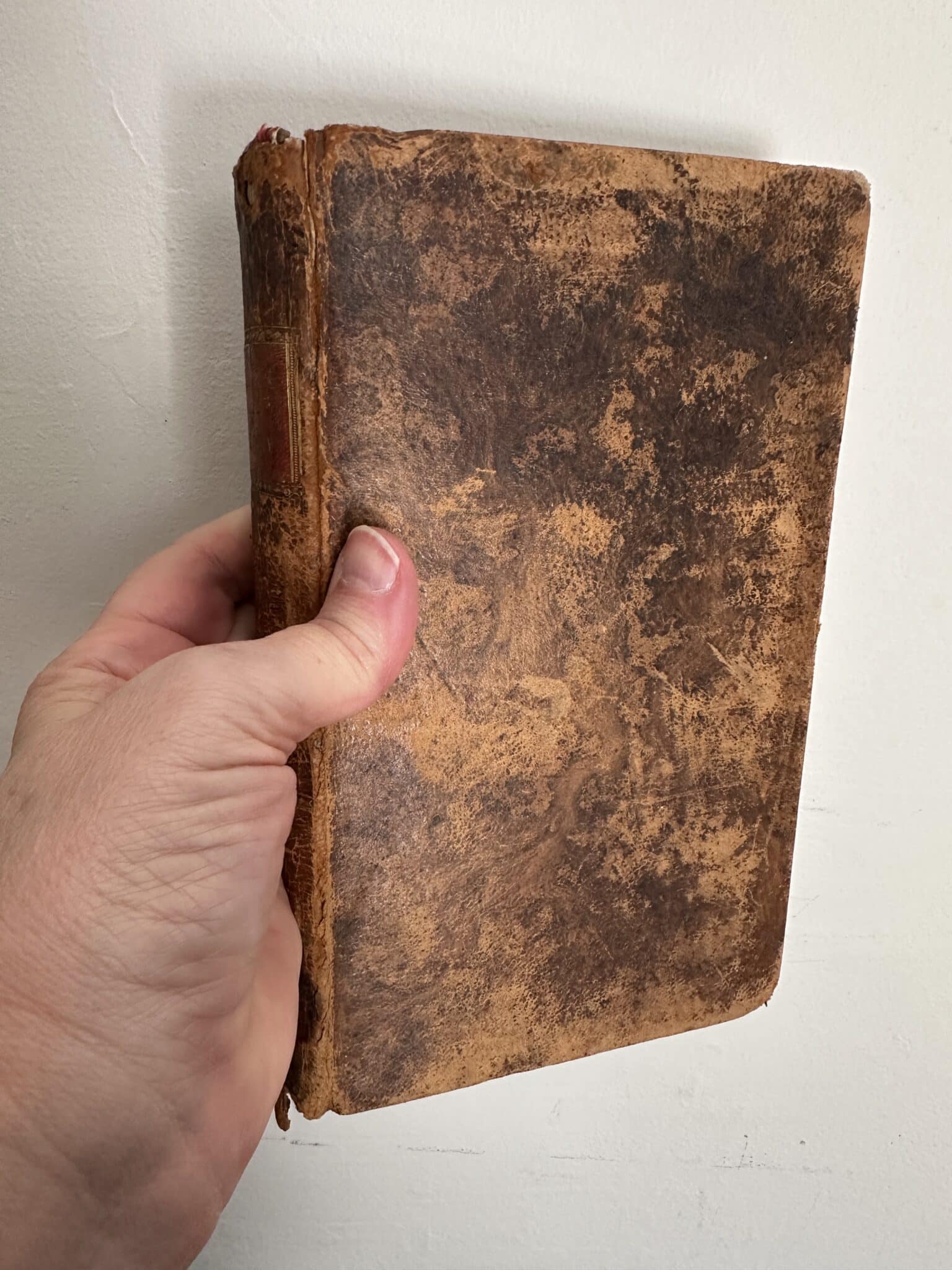 A hard cover edition with tan, marbled boards and gilt lettering on the spine. There is foxing and toning throughout but the text and fold out map are clear and legible. There is a previous owner’s paper label on the inside front board. There is wear, rubbing and some tears to the edge of the book. There is a previous owner’s ink inscription on the inside front page. There is a small ink stain on the books front edge.